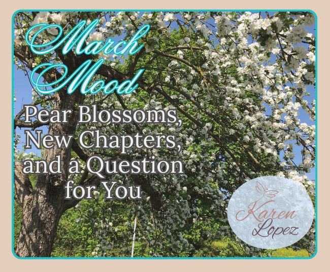 Pear blossoms, new chapters, and a question